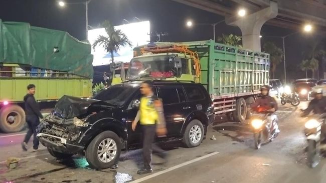 "Dugaan sementara dari keterangan sopir, bahwa rem dari mobil truk tronton ini tidak berfungsi baik (blong), sehingga menabrak mobil Pajero dan beruntun," katanya, Rabu (24/1/2024).