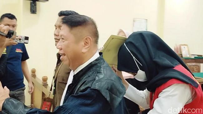 Momen tersebut menjadi perhatian bagi pengunjung persidangan yang melihat peristiwa tersebut.