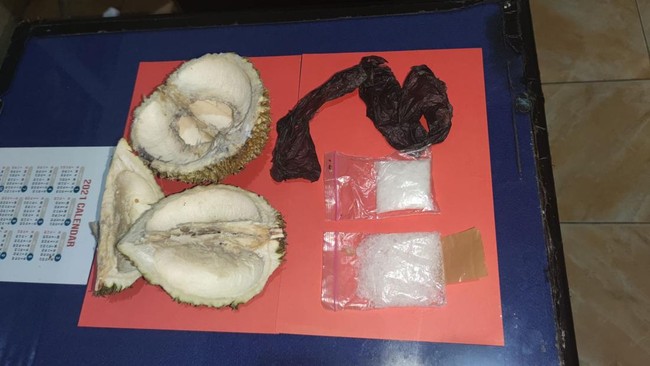 "Anggota melakukan pemeriksaan dan akhirnya mengecek durian yang dicurigai. Dari salah satu durian kami mendapatkan barang bukti sabu yang dikemas dua plastik klip. Setelah ditimbang sabu tersebut diketahui memiliki berat 50,88 gram," ungkap dia.
