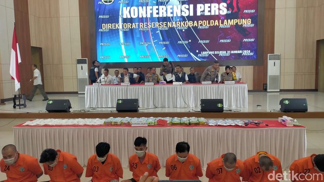 Sebelumnya diberitakan, Polda Lampung mengamankan 8 orang yang terlibat dalam jaringan narkoba internasional Fredy Pratama. Mereka adalah AM (30), AB (27), MY (26), AI (22), EN (30), RY (33), SA (26), dan MH (30).