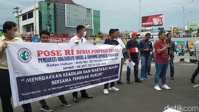 Pantauan detikSumbagsel di lapangan, peserta aksi sekitar 15 orang memberikan orasi di depan Mapolda Sumsel. Tampak pula personel kepolisian berjaga di depan pagar selama aksi berlangsung.