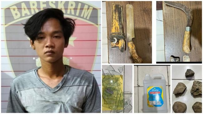 Dalam pengungkapan itu, polisi juga berhasil mengamankan sejumlah barang bukti seperti, sebilah golok yang gagang coklat beserta sarung, celurit, jeriken 5 liter, pecahan kaca dan sejumlah batu hitam.