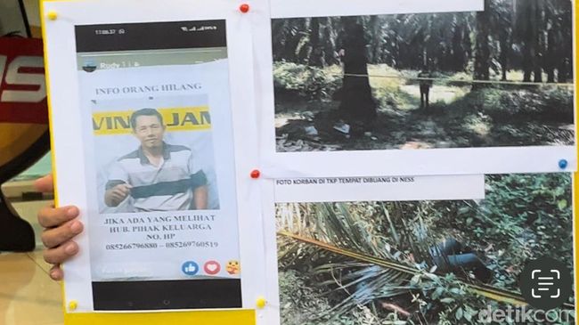 Dirreskrimum Polda Jambi Kombes Andri Ananta Yudhistira mengatakan jasad korban ditemukan setelah polisi menangkap satu pelaku Agam Santoso (19), Minggu (14/4/2024). Dari situ, Agam menunjukkan lokasi mayat korban yang dibuang bersama rekannya Hafif Tramubia (22), di kebun sawit Jalan Ness, Kabupaten Batanghari, Jambi.