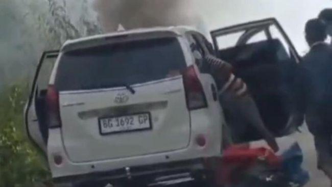 Kebakaran satu unit mobil Avanza warna putih yang ditumpangi pemudik yang baru pulang dari Lampung, di Musi Rawas (Mura), Sumatera Selatan. Peristiwa itu diduga terjadi karena korsleting listrik pada kendaraan tersebut.