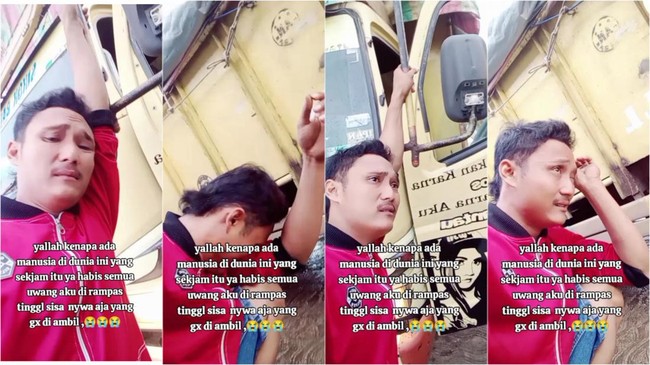 "Hampir aku tabrak tadi itu (para perampok) biar dia mati sekalian, tapi aku mikir ibu aku, Pak. Aku mikir takut masuk penjara, Pak. Serba salah sopir ini Pak, nggak ada benernya sopir ini. Ditabrak mati kita dipenjara, nggak ditabrak kita yang jadi korban ditujah sama preman-preman itu, Pak. Harus gimana sopir ini, Pak. Tolonglah Pak tindak lanjuti Pak," sambungnya.