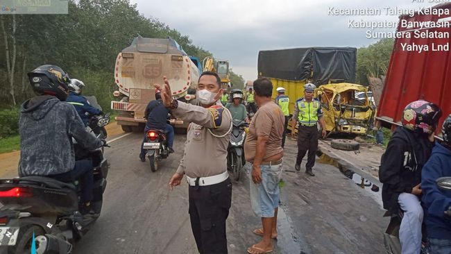 Sebelumnya, Kecelakaan adu banteng antara dua unit truk terjadi di Jalinsum Banyuasin, Sumatera Selatan, Rabu (29/5) petang. Satu orang dilaporkan tewas dalam peristiwa tersebut.