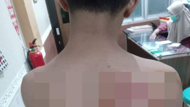 Adapun korban berinisial MR, warga Dusun Tanjung Rame, Desa Tanjung Baru, Kecamatan Merbau Mataram, Kabupaten Lampung Selatan. Dalam foto yang diterima detikSumbagsel, punggung dan lengan korban tampak mengalami luka memar.