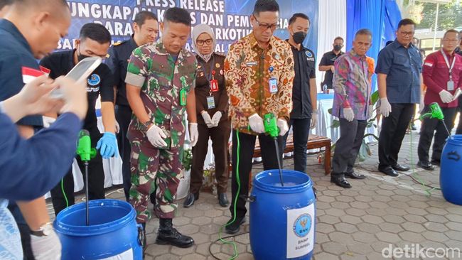 Pemusnahan sabu itu dilakukan di lapangan Parkir BNNP Sumsel, Palembang, Kamis (18/7/2024).