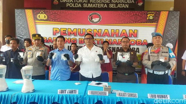 Direktorat Reserse Narkoba (Ditresnarkoba) Polda Sumsel melakukan pemusnahan sabu seberat 1.496,73 gram sabu. Ini merupakan barang bukti yang didapat dari dimusnahkan dari 9 laporan polisi (LP) selama Juli 2024.