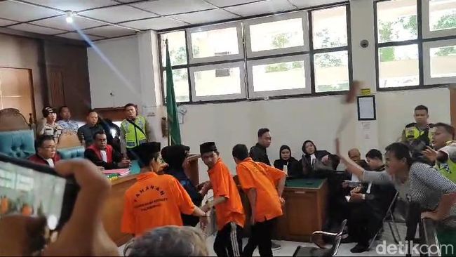 Kericuhan itu berhasil dilerai usai keluarga korban digiring petugas kepolisian dan petugas keamanan PN Palembang untuk keluar dari ruang sidang.