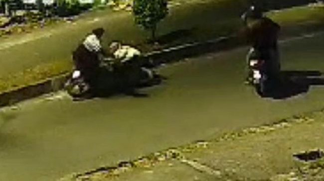 Setelah korban jatuh, satu orang pelaku turun dengan mengacungi senjata tajam kepada korban. Pelaku lantas merampas sepeda motor korban dan kemudian meninggalkan keduanyadi lokasi.