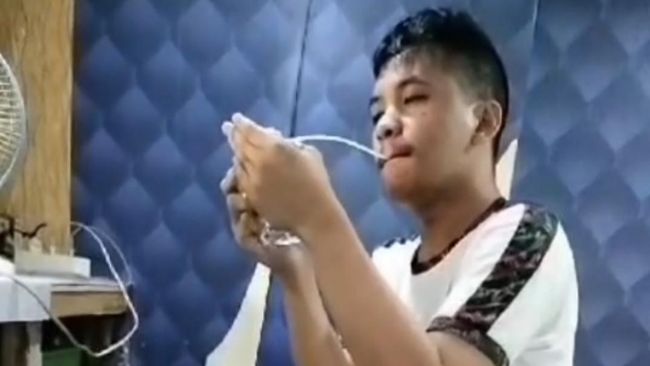 Dalam video yang beredar luas di media sosial, pada potongan video yang berdurasi 30 detik terlihat pria berbaju putih tengah asyik menghisap sabu dari bong yang dibuat dari plastik botol minum kemasan sambil direkam.