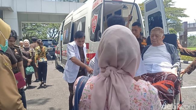 Pantauan detikSumbagsel di Kejati Sumsel pada Senin (10/3), Haji Alim tiba di halaman Kejati Sumsel pukul 12.00 WIB diantar menggunakan ambulans dengan dikawal puluhan Jaksa dan petugas medis.