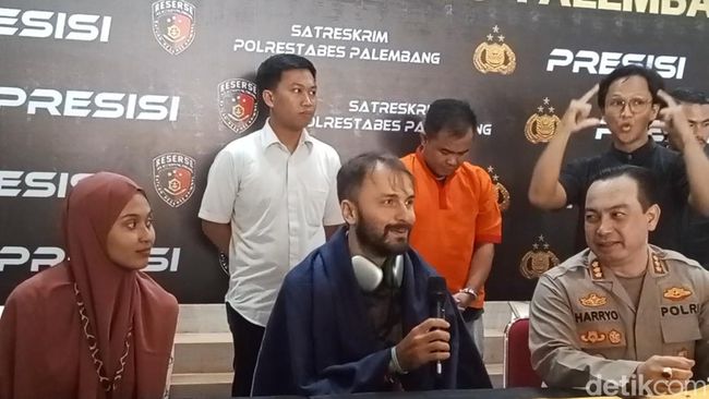"Saya juga ingin menyampaikan permintaan maaf untuk pria ini (karena menjadi tersangka usai mencuri motor sewaannya)," ujar Konstantin sambil menunjuk tersangka setelah ungkap kasus di Polrestabes Palembang, Rabu (16/4/2025).