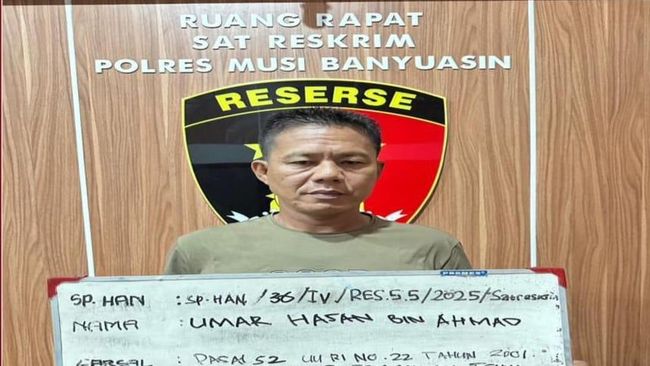 Sumur minyak ilegal di Kabupaten Musi Banyuasin, Sumatera Selatan (Sumsel) terbakar. Pemilik sumur bernama Umar Hasan (51) diamankan polisi.