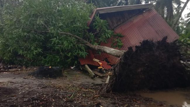 Tampak juga bangunan yang ambruk akibat tertimpa pohon yang tumbang.
