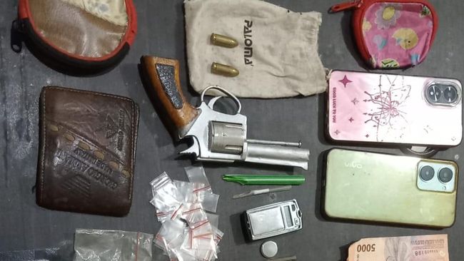 Kata Suhendri, saat pukul 01.30 WIB, petugas berhasil mengamankan AA beserta sejumlah barang bukti satu pucuk senjata api rakitan jenis revolver, dua butir amunisi kaliber 9 mm, serta 17 paket sabu siap edar.