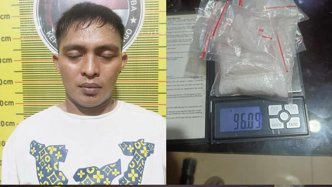 Janter Saputra (26), warga Tebo, Jambi, ditangkap polisi usai mengedarkan sabu 97 gram diduga jaringan Lapas. Sebanyak 96 gram paket sabu disita.