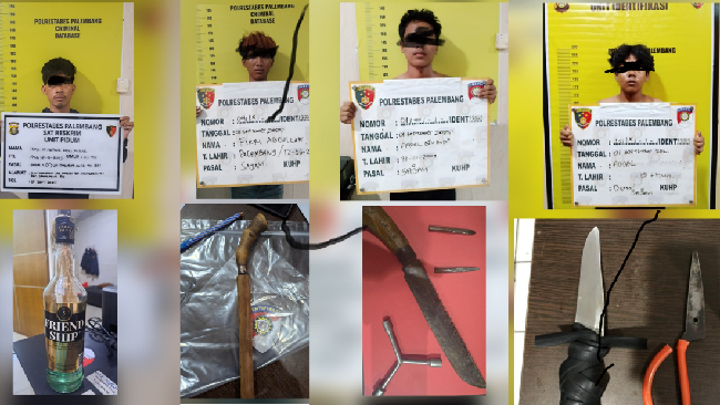 Saat ini keempat pelaku telah diamankan di Mapolrestabes Palembang untuk pemeriksaan lebih lanjut. Mereka terancam disangkakan Undang-Undang Darurat Nomor 12 Tahun 1951 tentang kepemilikan senjata tajam dan bahan peledak.