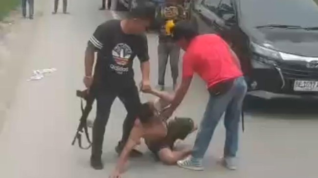 Dalam video yang beredar terlihat para pelaku berhasil diamankan di tengah jalan setelah sempat melarikan diri usai menggigit tangan seorang anggota kepolisian bernama Aiptu M Basuki.