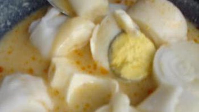 Karena gulungan sagu tidak memiliki rasa, dibuatlah kuah dari santan, rempah, serta ikan gabus. Dari perpaduan itulah lahir makanan baru bernama burgo, yang juga dikenal sebagai bubur sego.