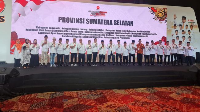 Partai Keadilan Sejahtera menyerahkan dukungan untuk 18 bakal calon kepala daerah di Sumatera Selatan (Sumsel). Penyerahan dilakukan Presiden PKS Akhmad Syaikhu di Tangerang, Selasa (20/8/2024).