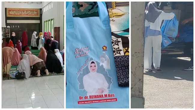 Ada beberapa video yang diterima detikSumbagsel. Pada video pertama, terlihat sejumlah timses Reihana mengeluarkan totebag dari mobil untuk dibagikan kepada warga. Kemudian pada video lainnya, terlihat Reihana mengenakan gamis putih berpelukan dengan ibu-ibu di dalam masjid.