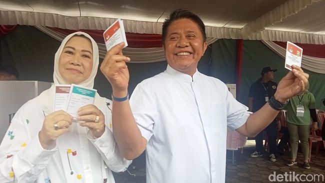 Pantauan detikSumbagsel di TPS 27 Jalan AKBP Cek Agus, tepatnya di Kompleks Bulog, Kecamatan Ilir Timur 3, Palembang, Rabu (27/11/2024), Herman Deru dan istri tiba sekitar pukul 09.50 WIB. Mereka tampil serasi dengan mengenakan kemeja putih.