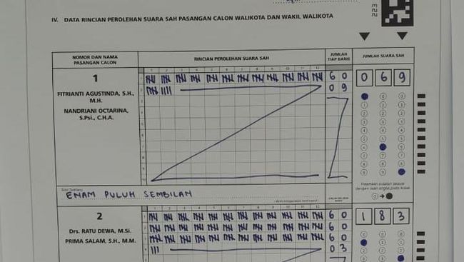 Dari data yang diterima detikSumbagsel total 376 suara sah di TPS 4 tersebut pasangan nomor urut 1 Fitri-Nandri hanya memperoleh 69 suara, di bawah Yudha-Bahar 124 suara, dan RD-PS 183 suara.