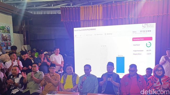 Sementara itu, dengan hasil kemenangan sementara ini tim kemenangan RD-PS sudah merayakannya. Pantauan detikSumbagsel di posko pemenangan RD-PS, pendukung bersorak-sorai sambil mengibarkan bendera pasangan nomor urut 02.