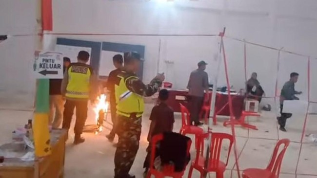 Pembakar kotak suara di TPS 02 Desa Renah Kayu Embun (RKE), Kecamatan Kumun Debai, Kota Sungai Penuh, Jambi, telah diamankan polisi dan Bawaslu. Pelaku menyerahkan diri kepada pihak berwajib.