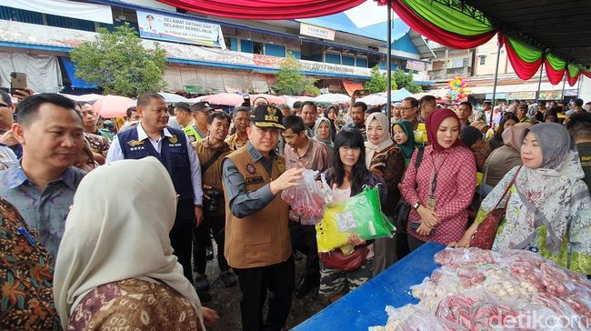 Agus Fatoni juga berkeliling ke area dalam pasar untuk mengecek harga sembako. Namun dari pengecekan, dia memastikan harga pangan tersebut masih stabil. Di antaranya daging ayam Rp 28 ribu per Kg, daging sapi kisaran Rp 150 ribu per Kg dan lainnya.