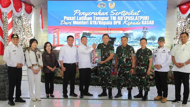 "Penyerahan sertifikat ini tentu menjadikan kepastian hukum Puslatpur semakin kuat. Diharapkan lahan Puslatpur yang 8.000-9.000 hektare berada di OKU Timur dapat semakin terjaga batas wilayahnya," ujar Deru, Rabu (13/3/2025).