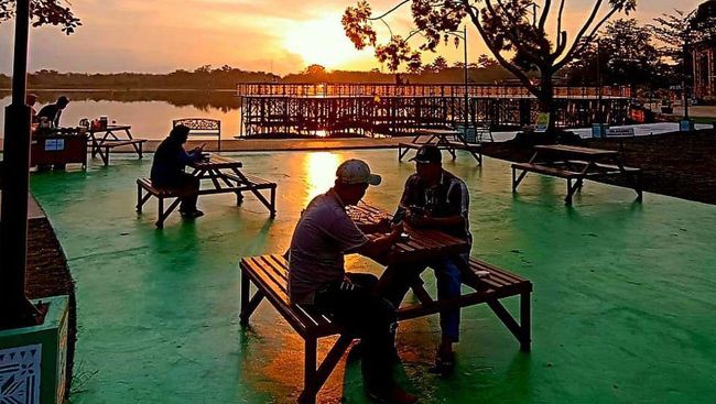 Danau Aur merupakan salah satu wisata yang terkenal di Musi Rawas, Sumatera Selatan (Sumsel). Tak hanya pemandangan danau yang indah, di sana juga tersedia tempat nongkrong bagi wisatawan yang berkunjung ke destinasi wisata tersebut.