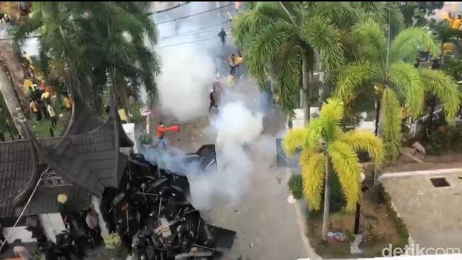 Pantauan detikSumut di lokasi, Senin (11/4/2022), tanda-tanda unjuk rasa akan ricuh sudah terlihat menjelang pukul setengah lima sore. Massa yang memadati jalan-jalan di depan Gedung DPRD Provinsi Sumatera Barat, berusaha merangsek masuk gedung dewan dengan merusak pagar kawat berduri.