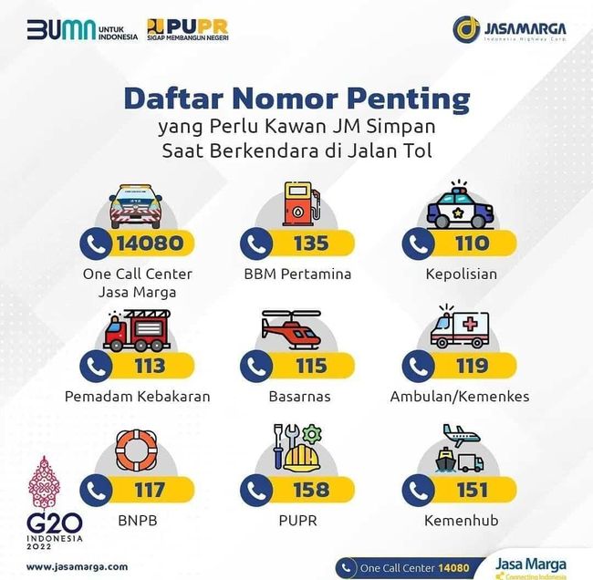 Nomor penting ini sangat berguna saat Anda berhadapan dengan situasi darurat di jalan tol, baik itu kecelakaan, bencana, kendaraan mogok, habis bensin, orang sakit dan masalah darurat lainnya yang membutuhkan pertolongan segera.