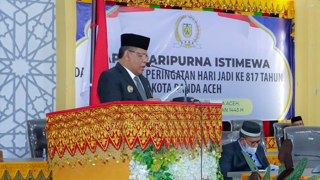 Wali Kota Banda Aceh Aminullah Usman menyampaikan sejumlah keberhasilan program Pemkot Banda Aceh. Hal ini ia sampaikan di hadapan pimpinan dan anggota DPRK pada sidang paripurna istimewa HUT Kota Banda Aceh ke 817.