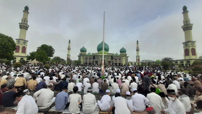 Masjid di Kota Pekanbaru, Riau menggelar salat Idul Fitri tahun ini. Antusias masyarakat terlihat sangat besar setelah 2 tahun salat Idul Fitri ditiadakan. Di Masjid Raya An Nur, terlihat ribuan jemaah memenuhi masjid hingga pelataran seluas 12,4 Ha tersebut.