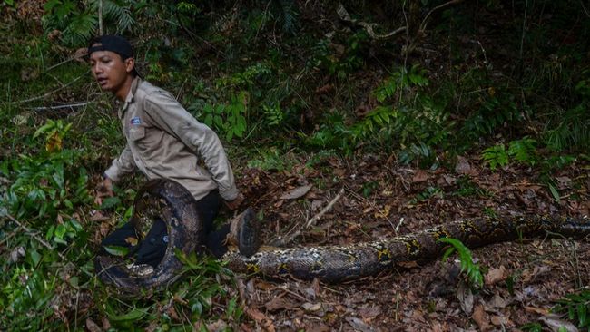 "Yang menggigit dan melilit ini ular yang dari Pelalawan. Udah sebulan kita evakuasi dari kebun, daripada dibunuh sama warga, lebih baik kita evakuasi waktu itu dan dirawat di rumah," kata Amar.