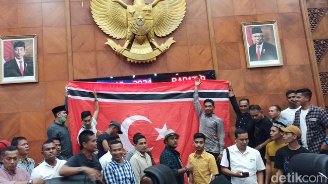 Usai rapat paripurna pelantikan ditutup, tamu undangan dipersilahkan untuk memberi selamat ke Pon Yahya. Saat itulah sejumlah pria membentangkan bendera bulan bintang di dalam gedung.