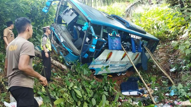 Bus PO Penantian Utama masuk ke dalam jurang di Jalan Lintas Barat, Kecamatan Bangkunat, Kabupaten Pesisir Barat, Lampung. 1 orang tewas dan 31 orang terluka dalam kejadian itu.