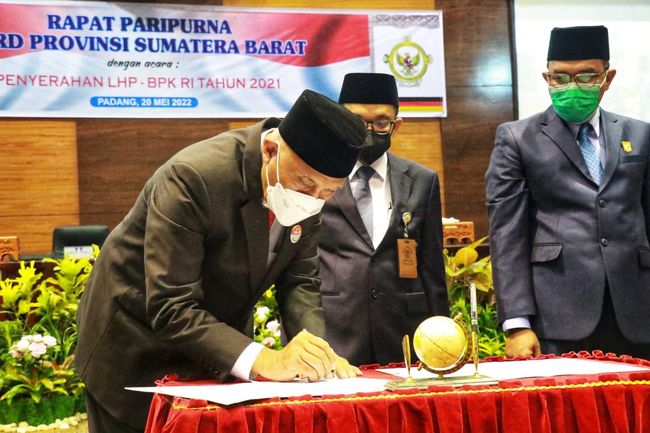 Laporan WTP tersebut diterima langsung Ketua DPRD Provinsi Sumbar, Supardi dan Gubernur Sumbar, Buya Mahyeldi yang diserahkan langsung oleh BPK RI dalam Rapat Paripurna Dewan Perwakilan Daerah (DPRD) Provinsi Sumbar. Atas capaian tersebut Mahyeldi mengucapkan terima kasih kepada BPK RI yang telah memberikan penghargaan secara independen, objektif, dan profesional dari pemeriksaan laporan keuangan Tahun Anggaran 2021.