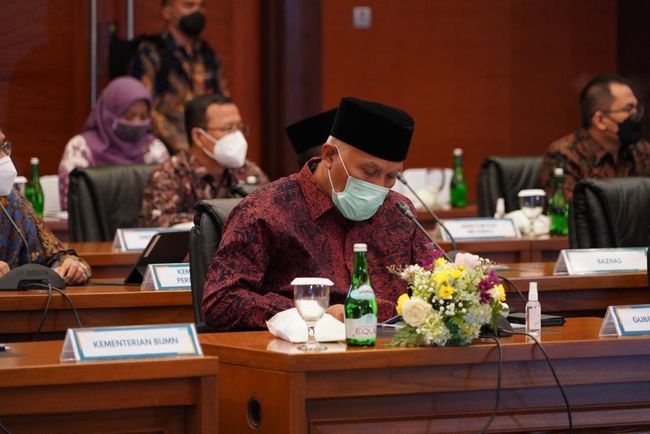 Gubernur Sumatera Barat Buya Mahyeldi menghadiri pleno kedua Komite Nasional Ekonomi Syariah (KNEKS) di Gedung Juanda I, Kementerian Keuangan, Senin (30/5). Dalam forum itu ia berharap adanya pembentukan Komite Daerah Ekonomi dan Keuangan Syariah (KDEKS) di Sumatera Barat dapat mendorong semangat daerah lain untuk mempercepat pengembangan ekonomi dan keuangan syariah di Indonesia.