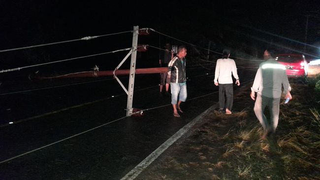 "Waktu itu terjadi angin kencang disertai hujan, tiba-tiba lampu mati, dan ternyata tiang listrik di depan rumah telah roboh di jalan," kata Sumiyati, Selasa (31/05/2022).