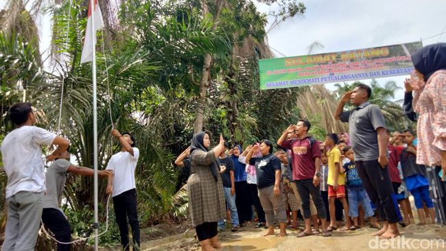 "Upacara menaikkan bendera ini sengaja kami gelar memperingati hari lahir Pancasila di atas jalan desa kami yang rusak sebagai bentuk kekecewaan bahwa jalan di desa ini tak pernah tersentuh," kata Ikbal kepada detikSumut.
