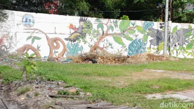 Di dalam taman juga terlihat sebuah plank yang bertuliskan "DILARANG MASUK, TAMAN LILI SUHERI MASIH DALAM PERBAIKAN,".