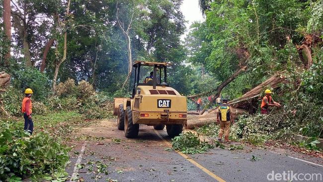 Petugas terpaksa melakukan rekayasa lalu lintas untuk memudahkan proses penebangan. Pengendara juga diminta untuk mencari jalur lain.