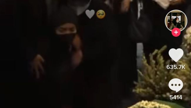 Dalam video lainnya terlihat, Nabila bersimpuh seorang diri di depan peti jenazah Eril. Nabila terlihat seolah seperti tengah mengobrol dengan Eril.