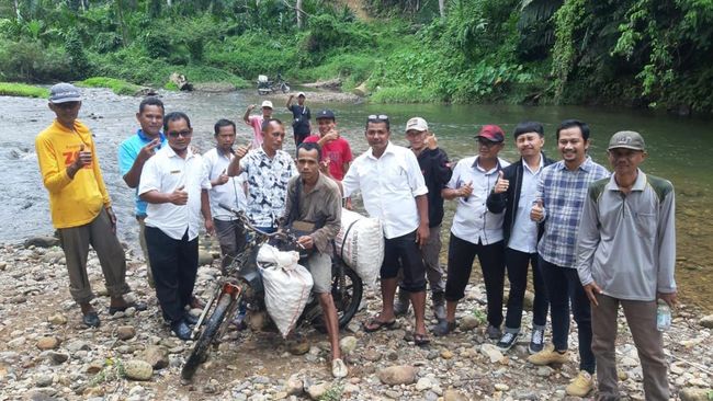 "Alhamdulillah, sudah datang tim memastikan lokasi untuk pembangunan jembatan gantung ini. Terima kasih pak Dirut PT Pelindo Arif Suhartono yang begitu serius membantu masyarakat. Semoga jembatan bisa dibuat segera untuk masyarakat Pessel," ujar Ketua Harian DPP Ikatan Keluarga Minang (IKM) i
