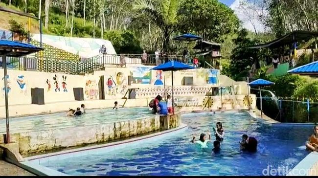 Air di dalam kolam ini, kata dia, terus mengalir. Tiga buah kolam yang disediakan dua diantaranya untuk anak-anak. Sementara kolam dewasa dibuat agak terpisah sehingga menjadikan tempat ini aman dan jadi tujuan wisata keluarga.